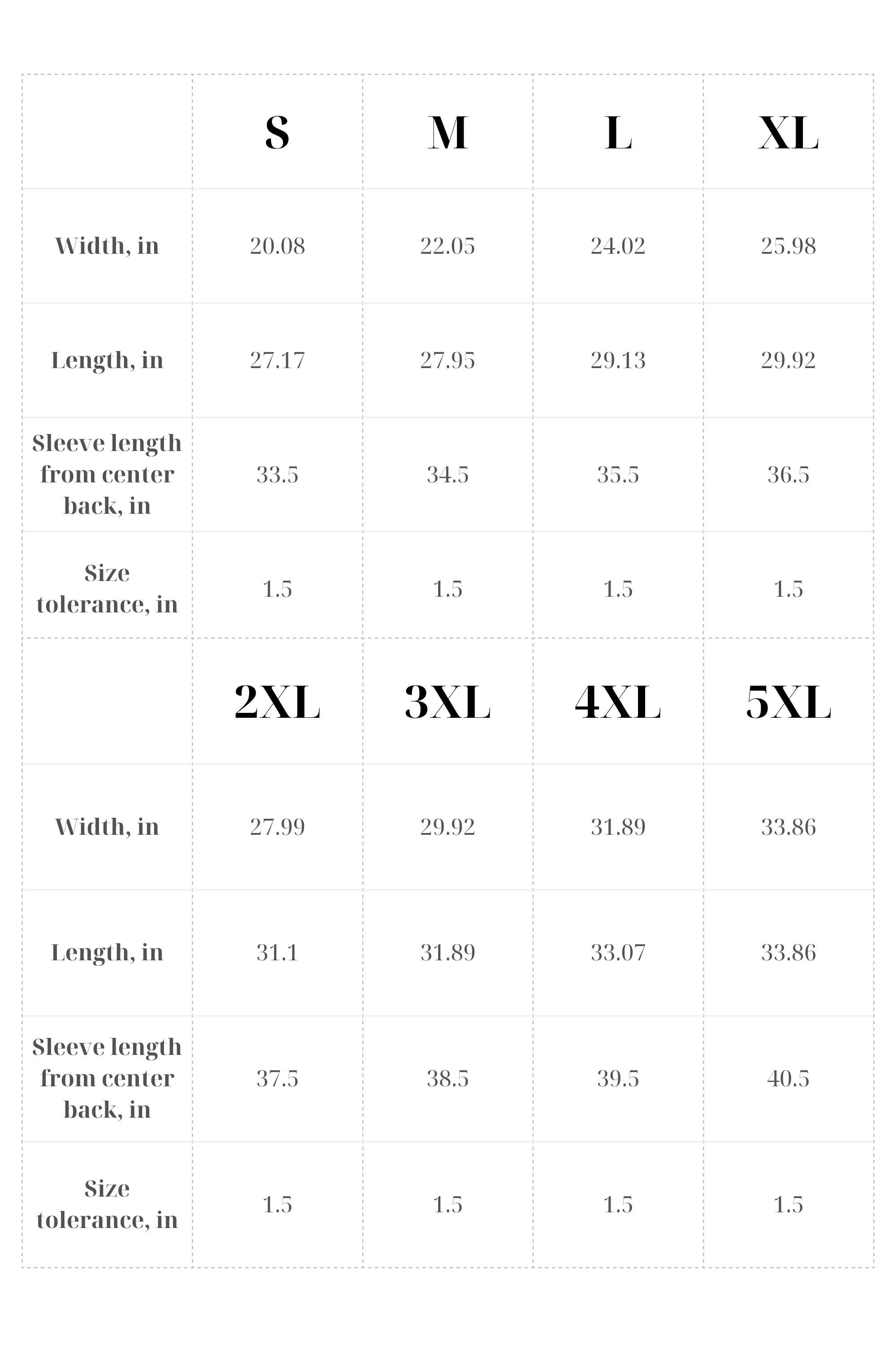SWEATSHIRTS SIZE TABLE
